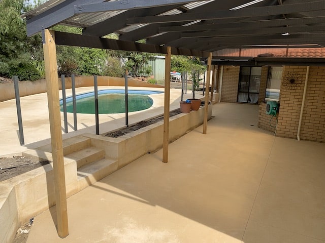 Our clients wanted to take their old brick-style outdoor entertaining and pool area and modernise it. While giving it a totally fresh, spacious and lush look, we made sure to keep it in line with the look of the home so they complemented each other and didn’t look disconnected!
